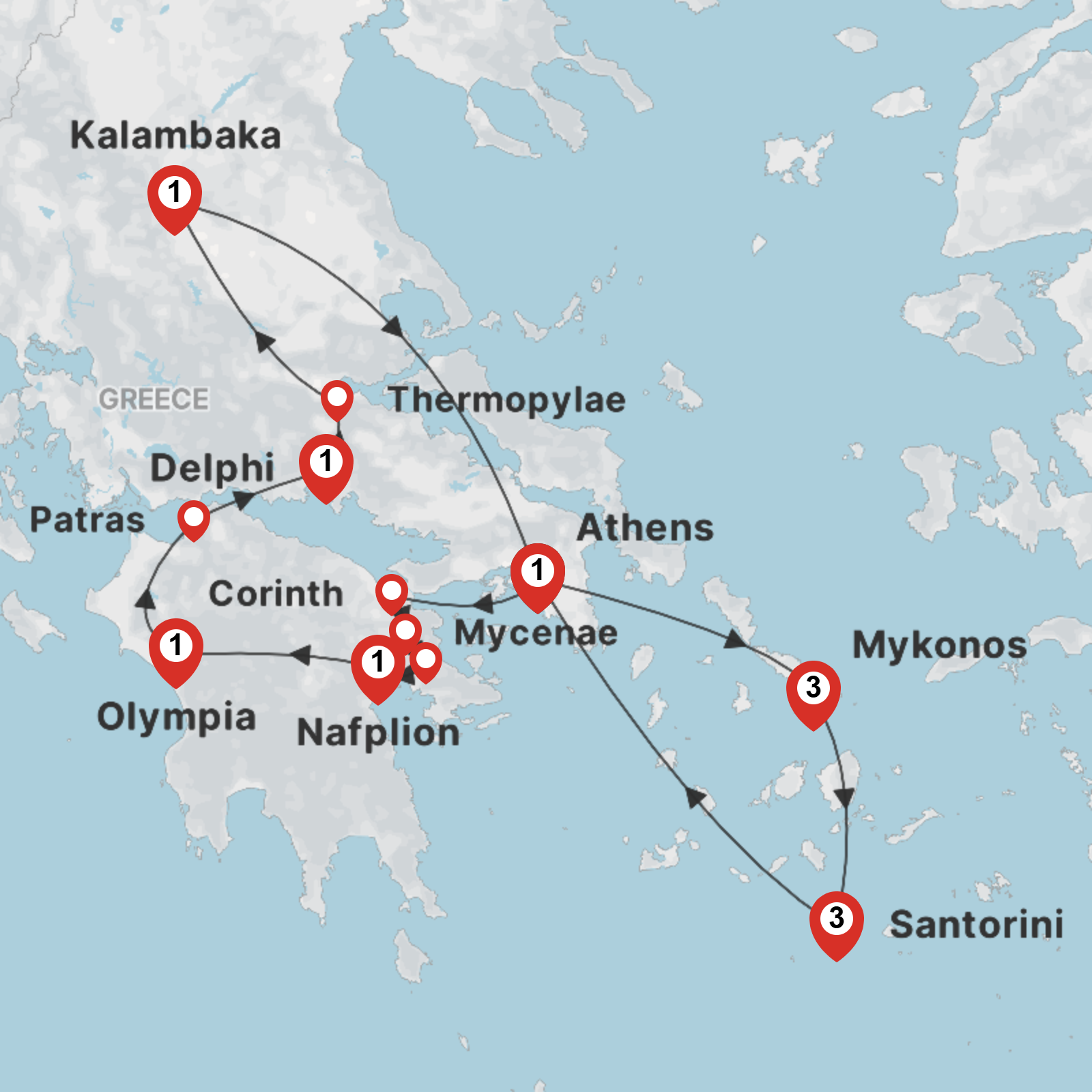 Discover the legendary beauty and fascinating mythology of Greece throughout the mainland and the precious islands of Mykonos and Santorini for 4 days each.